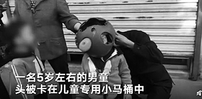 近日,江苏淮安一名男童的头被卡在儿童专用小马桶中,男童被憋得满脸通红,但依然淡定面对救援。据男童奶奶介绍,被卡男童有一个双胞胎弟弟,两人玩耍时弟弟将小马桶套在哥哥头上,结果取不下来。