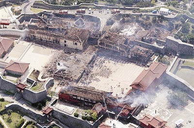 预计在此次火灾中,首里城正殿等7栋主要设施过火面积合计达4800平方米以上,漆器和绘画等400件以上的藏品被烧毁。