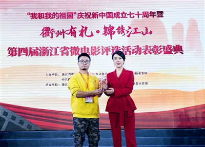 本报讯 “电影就是一场梦,每一名电影人都是造梦人。如果你也喜欢‘做梦’,欢迎把江山作为你梦想开始的地方……”11月4日下午,由浙江省电影家协会、浙江省文化产业促进会、浙江日报报业集团、中共衢州市委宣传部、中共江山市委、江山市人民政府主办,浙江省电影家协会微电影专业委员会、浙江法制报社、中共江山市委宣传部承办的“我和我的祖国”庆祝新中国成立七十周年暨“衢州有礼·锦绣江山”第四届浙江省微电影评选活动表彰盛典在衢州江山举行,八大单项奖、“我和我的祖国”庆祝新中国成立七十周年短片单元十佳影片以及“江山单元”十佳影片全部揭晓。由浙江传媒学院报送的微电影《出租车与奖杯》喜获最佳影片和最佳男演员两项大奖,成为最大赢家。