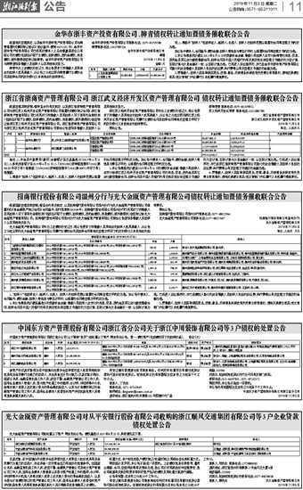 浙江省浙商资产管理有限公司 浙江武义经济开发区资产管理有限公司 债权转让通知暨债务催收联合公告