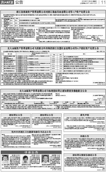 光大金瓯资产管理有限公司飞跃联合科技集团浙江仪器仪表有限公司等8户债权资产处置公告