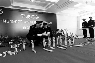 今年6月,浙江安吉某家具有限公司向宁波海关申报进口一批木制沙发、工艺品等个人物品,海关经风险分析后对该票货物进行布控查验,发现该票集装箱货物品种杂乱、包装不一,存在很大的夹藏风险。在随后进行的全倒箱细查细验中,海关发现了大量疑似象牙制品和梅花鹿、猎隼等濒危动物标本等,立即将案件移交海关缉私部门。宁波海关缉私局随即成立专案组,经摸排,将安吉某公司负责人张某抓捕归案,并在其公司内起获一批象牙等濒危动物制品。经了解,部分制品已寄往广州,专案组立即派员前往核查。最终,海关缉私警察从嫌疑人公司员工家中、高架桥下空地处、路边臭水沟里找到了被转移的动物制品。通讯员 黄燕波