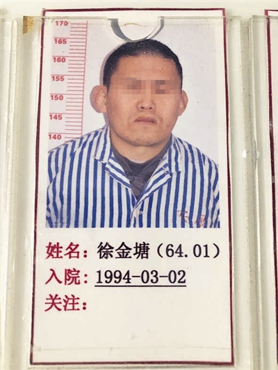 经安康医院诊断,男子精神发育迟滞(中度)。因男子口齿不清,智能低,不会写字,无法说清楚自己的名字和家庭住址,医生们只能从口音判断他大约是山东人,并根据他的发音为其取名“徐金塘”。医院病历记录上虽然有了“徐金塘”的名字,但平时医生们都叫他“小山东”。这些年,“小山东”一直在安康医院住院治疗,期间大家想方设法为“小山东”找回身份,但所有的努力都没有结果,时间一晃就是20多年。