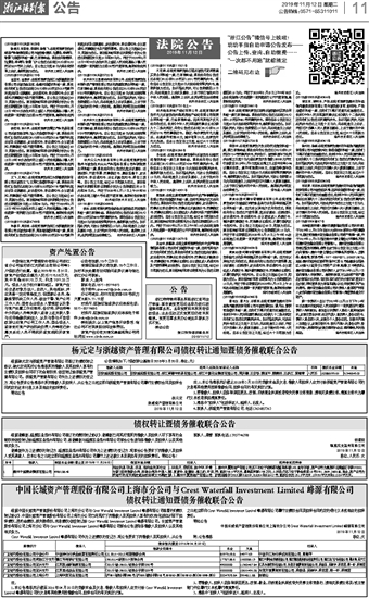 杨元定与浙越资产管理有限公司债权转让通知暨债务催收联合公告