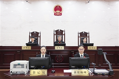 | 斯金锦(中)担任审判长组成合议庭审理 |
