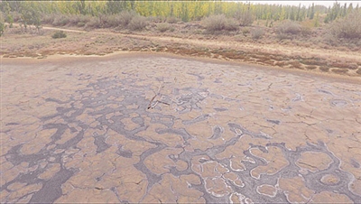 | 宁夏中卫“美利林区”的一处排污池(航拍图,图自澎湃新闻) |