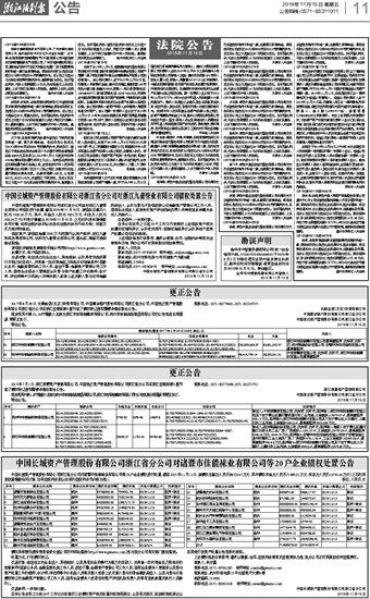 中国长城资产管理股份有限公司浙江省分公司对浙江九豪管业有限公司债权处置公告