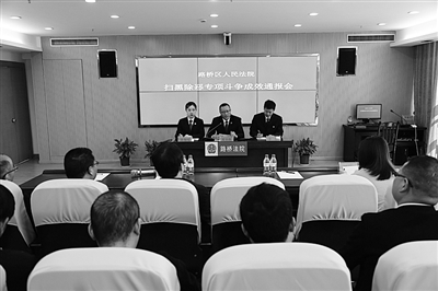 近日,台州路桥区法院召开新闻发布会,通报了该院开展扫黑除恶专项斗争成效。当地媒体记者和部分人大代表到会。通讯员 陈敏 高贝