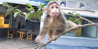解救“三三”,不得不提到今年4月,一只野猴大闹餐馆之事。
