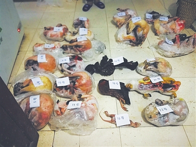 | 警方在犯罪团伙成员位于贵州赤水家中查获22具动物死体。 |