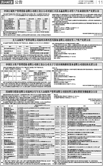 中国长城资产管理股份有限公司浙江省分公司对浦江杰昌水晶有限公司等7户企业债权资产处置公告