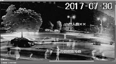 整个过程,精准对应重叠环节最难,检材和参照样本图片是否精准对应,直接关系到鉴定结果的准确性。“视频中时间码、文字、现场路灯杆、树干等静物都是对应重叠的标准物。”卢伟平介绍。此次鉴定中,卢伟平以检材右上角“2017-07-30”的时间码作为参照物,进行精准重叠。