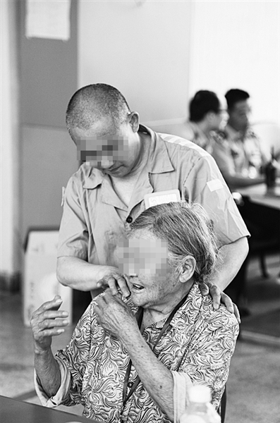 “儿子——”一声深情的呼唤,罪犯田某75岁的母亲坐在轮椅上,双手颤抖地抚摸着儿子那张不知在梦里出现了多少次的熟悉脸庞,两行清泪缓缓流下。田某则紧紧抱住母亲,眼泪一下子涌了出来。