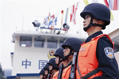 11月19日,在中国关累港,巡逻执法人员整装待发。