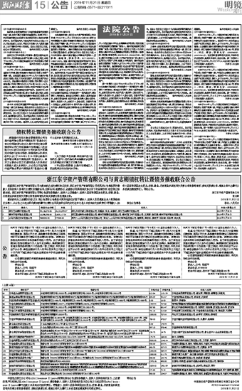 浙江东宇资产管理有限公司与黄志刚债权转让暨债务催收联合公告
