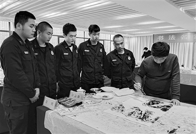 11月22日,杭州消防救援支队萧山大队开展书画活动,邀请西冷书画艺术交流中心的艺术家走进钱江世纪城中队,用笔墨共同“书”写新时代消防救援队伍训词精神。