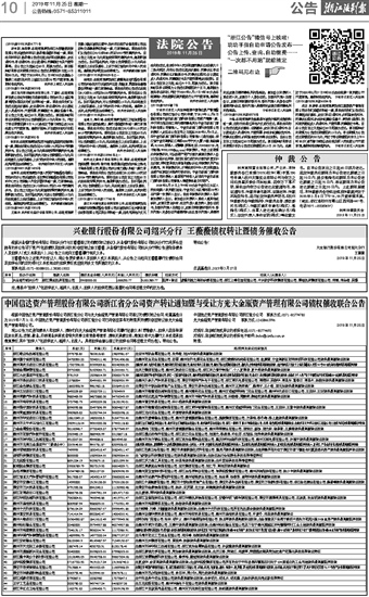 中国信达资产管理股份有限公司浙江省分公司资产转让通知暨与受让方光大金瓯资产管理有限公司债权催收联合公告