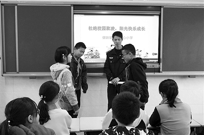 昨天下午,三门县公安局健跳派出所民警来到健跳镇六敖中心小学,开展以“拒绝校园欺凌,共建阳光校园”为主题的法治进校园活动,通过视频、案例讲解、学生情景剧表演、动员倡议等形式,增强学生抵制校园欺凌的观念。通讯员 潘六勇