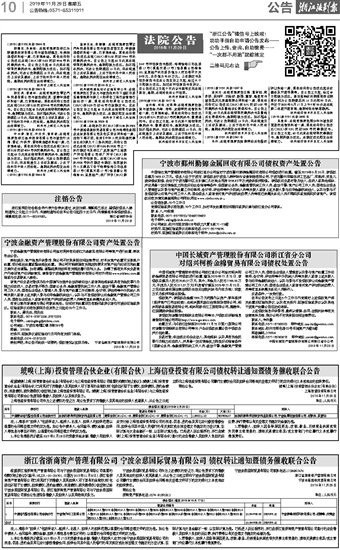 浙江省浙商资产管理有限公司 宁波余慈国际贸易有限公司 债权转让通知暨债务催收联合公告