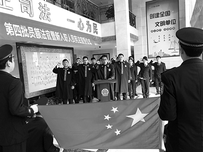 近日,三门县法院举行第四批员额法官暨2019年新入职人员宣誓仪式。3名新任领导、2名员额法官、5名新招录公务员及8名新招录司法雇员庄严宣誓。