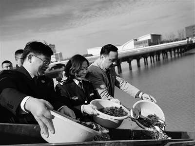 12月5日上午,杭州市江干区城管局举行2019年增殖放流暨“共护母亲河、共建美丽钱塘江”活动,来自社会各界的人士齐聚钱塘江,将近24万尾鱼放生钱塘江。据悉,为保护钱塘江生态环境,江干区增殖放流活动自上世纪80年代初开始至今未间断。今年,钱塘江(江干段)首次有禁渔期间非法捕捞人员主动参加增殖放流。