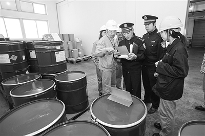 近日,台州市公安局黄岩分局治安大队和江口派出所民警一起,对辖区内化工企业的危险品仓库开展安全检查,确保各项安全措施落实到位,遏制安全事故的发生。