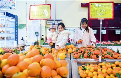 12月10日,消费者在重庆市石柱土家族自治县县城的一家超市内选购水果。