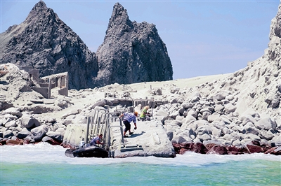 | 救援人员在火山喷发后登上新西兰怀特岛 |