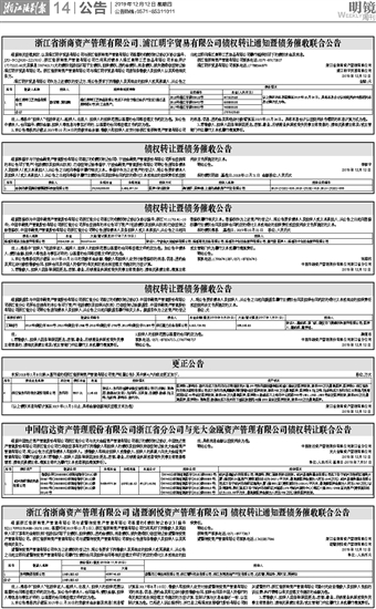 中国信达资产管理股份有限公司浙江省分公司与光大金瓯资产管理有限公司债权转让联合公告