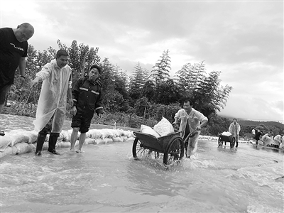 网格“一长三员”、基干民兵共30余人装泥袋、扛泥袋、垒泥坝……大家分工合作、齐心协力,经过1个多小时的抢险,顺利筑成一道人工堤坝,有效防止了洪水向村庄内部蔓延。“多亏了我们的网格化管理,街道、村干部第一时间赶到现场阻击洪水,否则洪水倒灌进房子里,我们的损失可就大了。”马车自然村村民邱舍良感激地说。