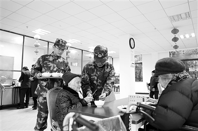 12月22日,冬至,武警浙江总队丽水支队官兵走进利宏养老院,为老人送去温暖。