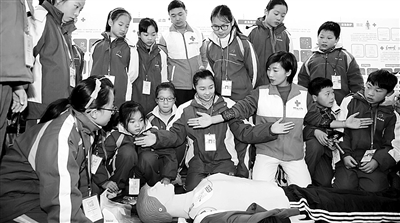 近日,在德清县生命教育展示馆,红十字会救护培训师现场向县实验学校的小学生传授心肺复苏、创伤救护等应急救护技能,普及急救知识,提高孩子们紧急避险意识和急救能力。