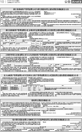 浙江省浙商资产管理有限公司 余姚市宏达喷雾器有限公司 债权转让通知暨债务催收联合公告