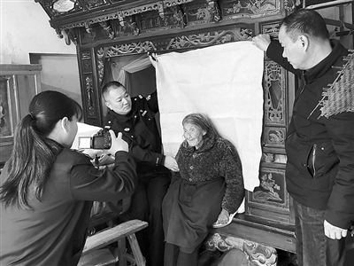 近日,临海市邵家渡派出所民警携带人像采集设备,为腿脚不便的90岁辖区群众马老太提供身份证拍照服务。据悉,为帮助群众解决困难,该所连日来深入辖区开展了一系列便民利民服务。