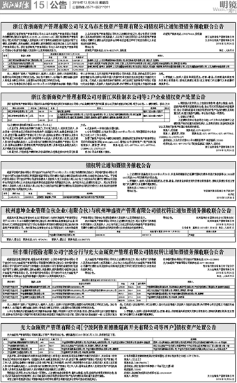 浙江省浙商资产管理有限公司与义乌市杰锐资产管理有限公司债权转让通知暨债务催收联合公告