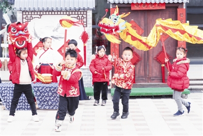 12月30日,德清县三合幼儿园开展“传统民俗闹新春”迎元旦活动,小朋友们在舞龙舞狮、年货节、小游戏、品年味等活动中,感受年味,开心迎接新年。