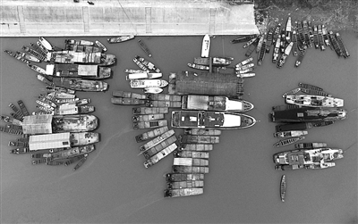| 在湖南常德汉寿县蒋家嘴镇,待回收的铁渔船停靠在洞庭湖边。新华社 薛宇舸 摄 |