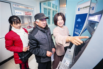 1月5日,在位于德清县武康街道的24小时市民服务之窗,市民在政务综合自助服务机上办理业务。2018年以来,德清县着力升级行政服务中心各项服务,不断整合资源,依托县域城市大脑,借助数据共享,打破数据壁垒,并在该县所有乡镇(街道)建立24小时自助服务区,为群众和企业提供服务。王正 摄