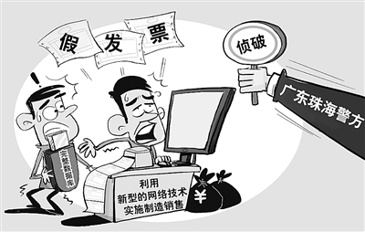 记者从广东珠海市公安局近日举行的新闻发布会上获悉,该局侦破全国首宗利用新型的网络技术实施制造销售假发票案件。该案涉及假发票数量达110万余份,票面总金额逾350亿元,受票客户共约24.8万家,遍及全国30个省份。