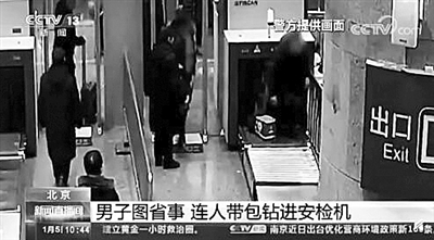 日前,北京西站,一名旅客过安检时,因“冬天穿太厚,携带的行李摘起来麻烦”,直接趴到安检机上,连人带包过了安检机,安检员立即将机器停止。随后,民警对该旅客进行了安全教育。