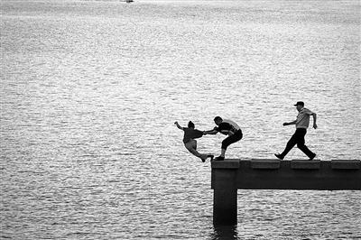 本报讯 1月7日,中国长安网2019年度照片公布,浙江的一张政法照片《这一伸手,就是生与死的距离》成为10张年度照片之一。2019年8月2日,衢州须江边,彩虹桥观景台上,一年轻女孩欲投江寻短见,辅警姜波、民警徐帅军飞奔而来伸手救援,这一幕恰好被摄影爱好者王明芝捕捉到。照片迅速成为网络爆红照,人们纷纷为警员点赞。