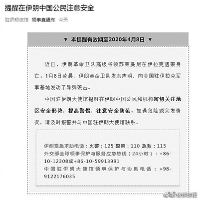 中国使馆紧急提醒: 在伊中国公民注意安全!