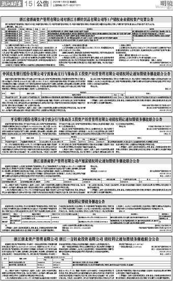 浙江浙北资产管理有限公司 浙江一言创业投资有限公司 债权转让通知暨债务催收联合公告