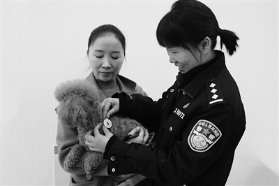 近日,临海市公安局古城派出所开展规范养犬专项整治,为辖区群众的爱犬免费佩戴印有二维码的犬牌。爱犬上牌后,相当于拥有了自己的“身份证”,只要微信扫一扫,就可知道犬的身份以及它主人的姓名、联系方式等信息。通讯员 金江发