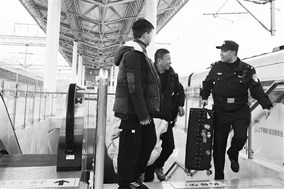 春运进入高峰期,车站返乡旅客增多,连日来,台州铁路派出所民警向旅客宣传铁路安全知识,维护站台秩序,为旅客创造安全、有序、温馨的出行环境。图为1月16日下午,民警在三门县动车站提供便民服务。通讯员 林利军