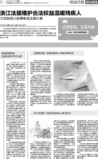 为切实维护和保障残疾人的合法权益,浙江省司法厅进一步完善制度建设、优化便民措施、提高服务质量、加强宣传引导,推动了全省残疾人法律援助工作再上新台阶。