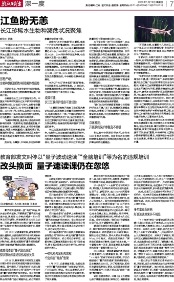 长江是中华民族的母亲河,分布有4300多种水生生物。当前长江水生生物种群衰退趋势还没有得到根本性扭转,保护事业依然任重道远。