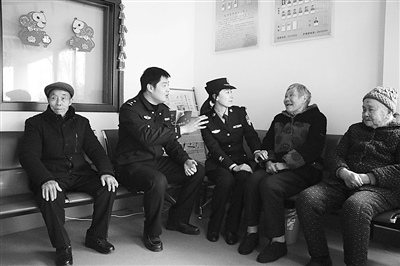 1月22日,舟山市公安局定海区分局城东派出所结合“百警进万家”活动,来到定海区第二福利院,为老人送上蛋糕、水果等及新春祝福。福利院内,干净的玻璃窗贴上了红火的窗花,民警们拿着工具忙碌在楼梯、宿舍间。走进休息室,民警们和老人聊起了家常,询问老人的身体状况、生活起居,叮嘱他们要注意自己的身体,并为他们送去了反诈防骗安全知识。