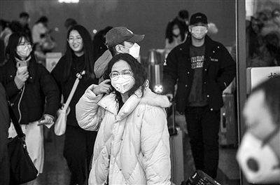 | 1月22日,铁路杭州东站,不少旅客戴口罩出行。董旭明 摄 |