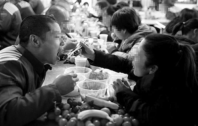 冬天的寒意没能阻挡家属进监帮教的热情。早上9点,省十里坪监狱八监区罪犯的家属们在民警的安排指挥下,有序走进高墙,在参观了罪犯的习艺场所和生活区现场后,和亲人一起坐下来提前吃上了年夜饭。